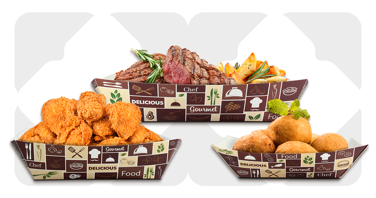 Também conhecidas como bandejas premium food trays, elas combinam funcionalidade com um design elegante, sendo amplamente utilizadas em food trucks, eventos, restaurantes e feiras gastronômicas. Além de oferecerem segurança no manuseio, as bandejas valorizam a apresentação dos pratos, destacando o conceito premium do seu negócio.