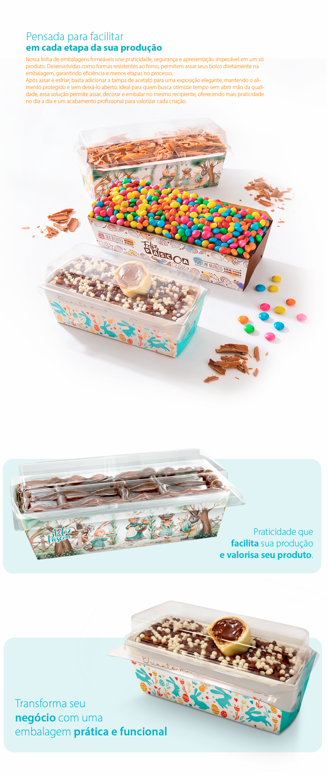 Com design temático exclusivo de Páscoa, essas embalagens trazem ilustrações encantadoras, elementos sazonais e acabamento com hot stamping dourado, transformando um simples caseirinho em um presente perfeito para a data. A tampa com encaixe firme e a estrutura reforçada garantem proteção no transporte, excelente apresentação e valorização no ponto de venda.