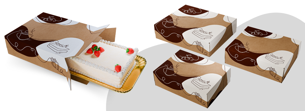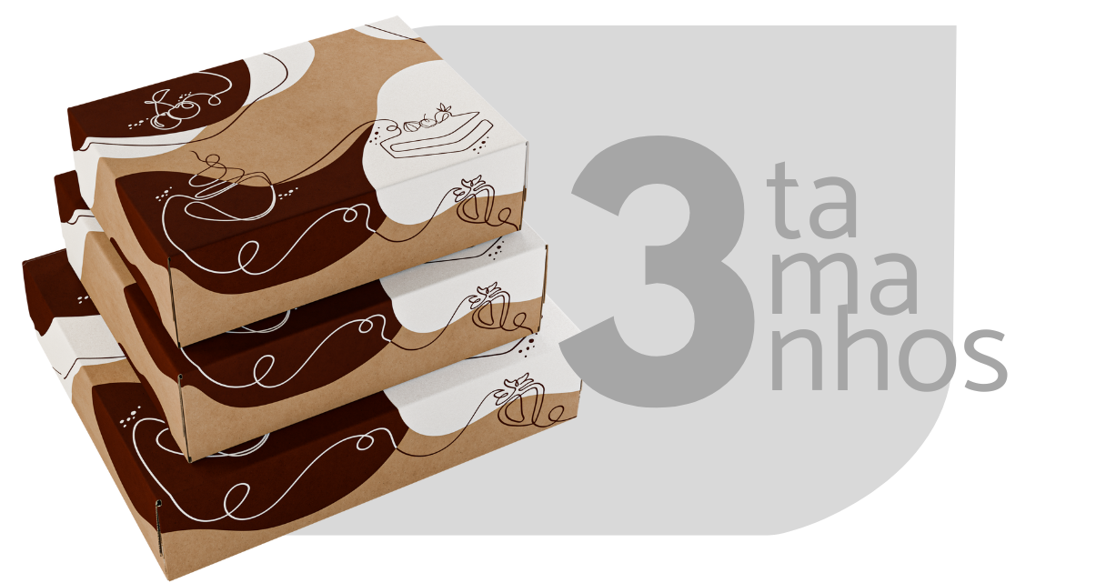 Nosso novo design foi pensado para valorizar o seu produto. Com desenhos e formas modernas, nossas embalagens destacam-se pelo toque inovador da impressão branca no kraft, uma tendência crescente no setor de panificação e confeitaria. Eleve o visual dos seus bolos e encante seus clientes com embalagens que combinam resistência e sofisticação.