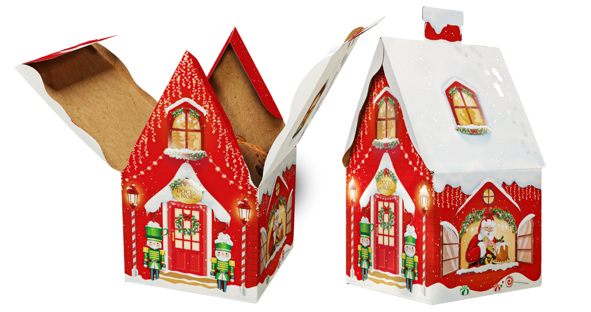 Essa embalagem é perfeita para valorizar os panetones de 400g, que, segundo pesquisa da Kantar, são os mais procurados durante o Natal, especialmente em embalagens de papel. Com o seu design inovador e cheio de charme, a Embalagem de Panettone Casa do Noel transforma o panetone do seu negócio em um presente memorável ou uma lembrancinha irresistível.